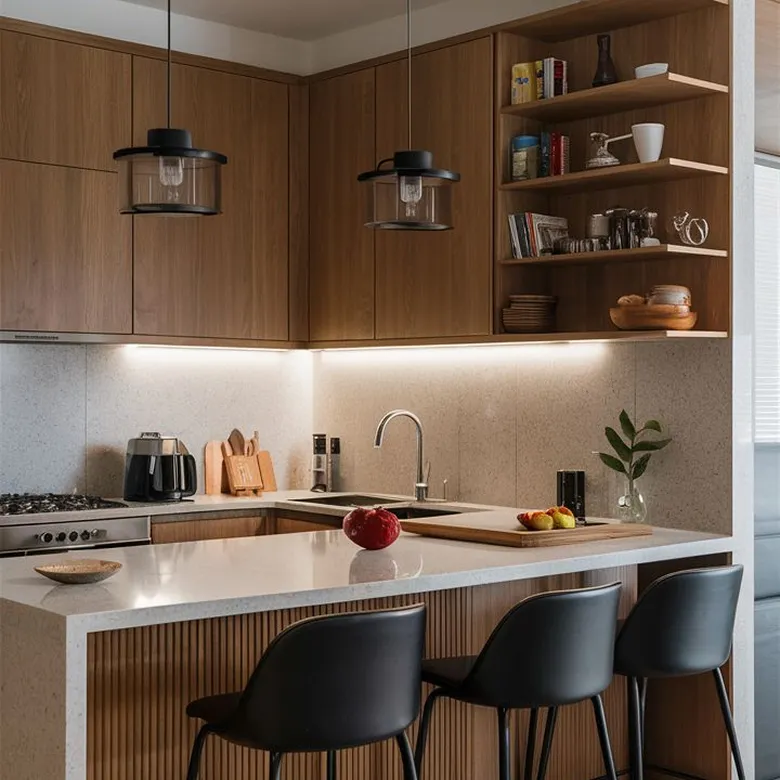 Compact apartments benefit from layouts that maximize space efficiency. L-shaped or galley kitchens with vertical storage, hidden compartments, and durable quartz or engineered surfaces support organized, practical living for modular kitchen design.