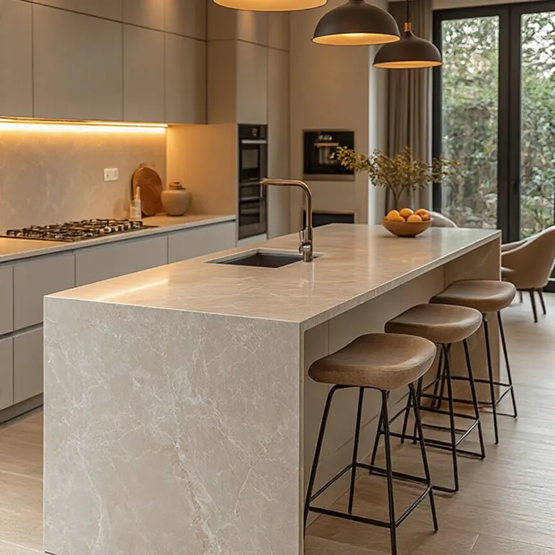 Quartz, granite, and sintered stone are favored for countertops due to their resilience, non-porous composition, and heat resistance. These materials retain their polished finish in the region’s demanding climate. For a more exclusive touch, Arabescato marble and onyx slabs give dramatic patterns and a luxurious feel needed for Dubai’s high-end kitchens.