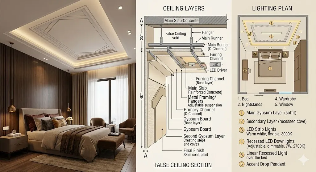 Start with a good room layout, select soft colors, and prioritize quality over quantity. Add proper lighting, functional furniture, and soft textures. The completed bedroom must be cozy, clean, and comfortable.