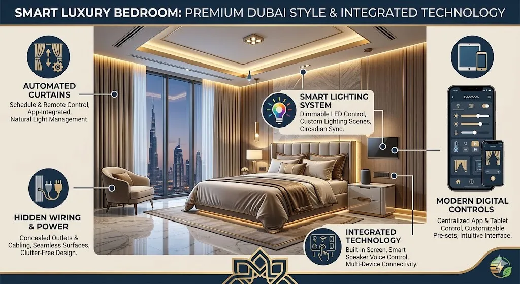 Bedrooms today include more smart features. Technology needs to blend in so it helps daily life without hurting the look.