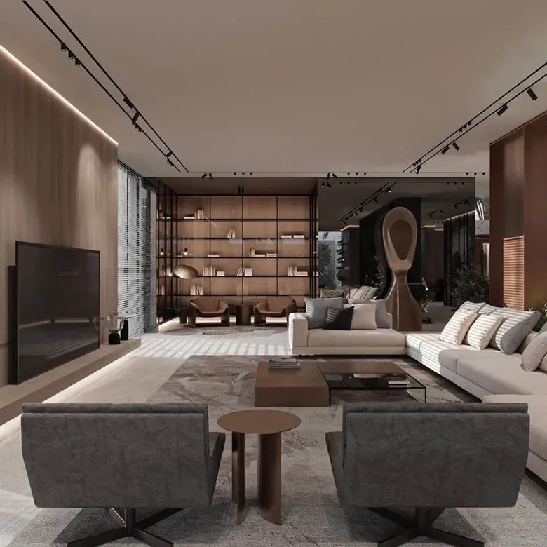 Luxury villa interiors focus on spacious layouts, open connections to outdoor areas, and high-quality finishes such as natural stone, wood, and metals. Design elements include floor-to-ceiling windows, bespoke joinery, statement lighting, and smart home systems. Interiors are planned to provide privacy, comfort, and functional flow while reflecting the owner’s personality.