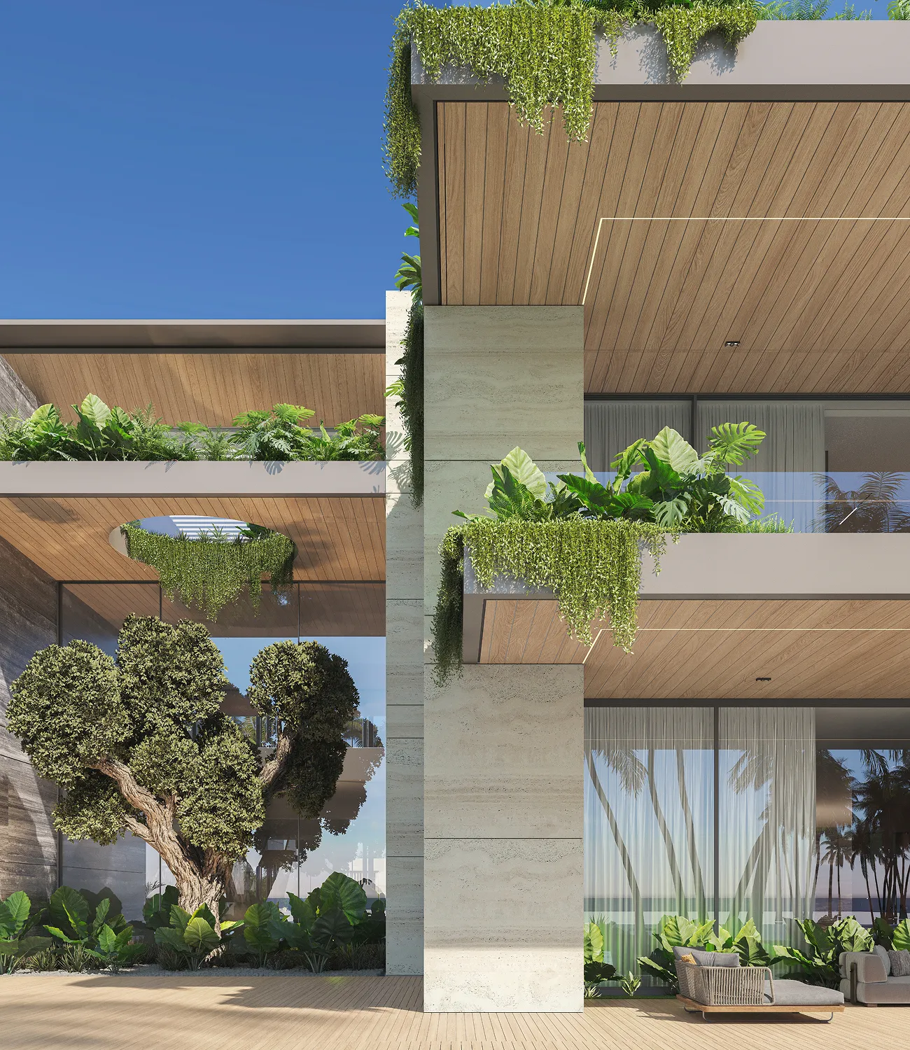 The Wraith Residence on Jubail Island, Abu Dhabi, is a 4,341-square-meter luxury home designed with a seamless integration of architecture and interior design. This exclusive residential project features contemporary architecture, expansive glass facades, and refined interior spaces inspired by tropical modern living. Set within a premium waterfront community, the design highlights natural materials, indoor-outdoor living, and high-end residential luxury.