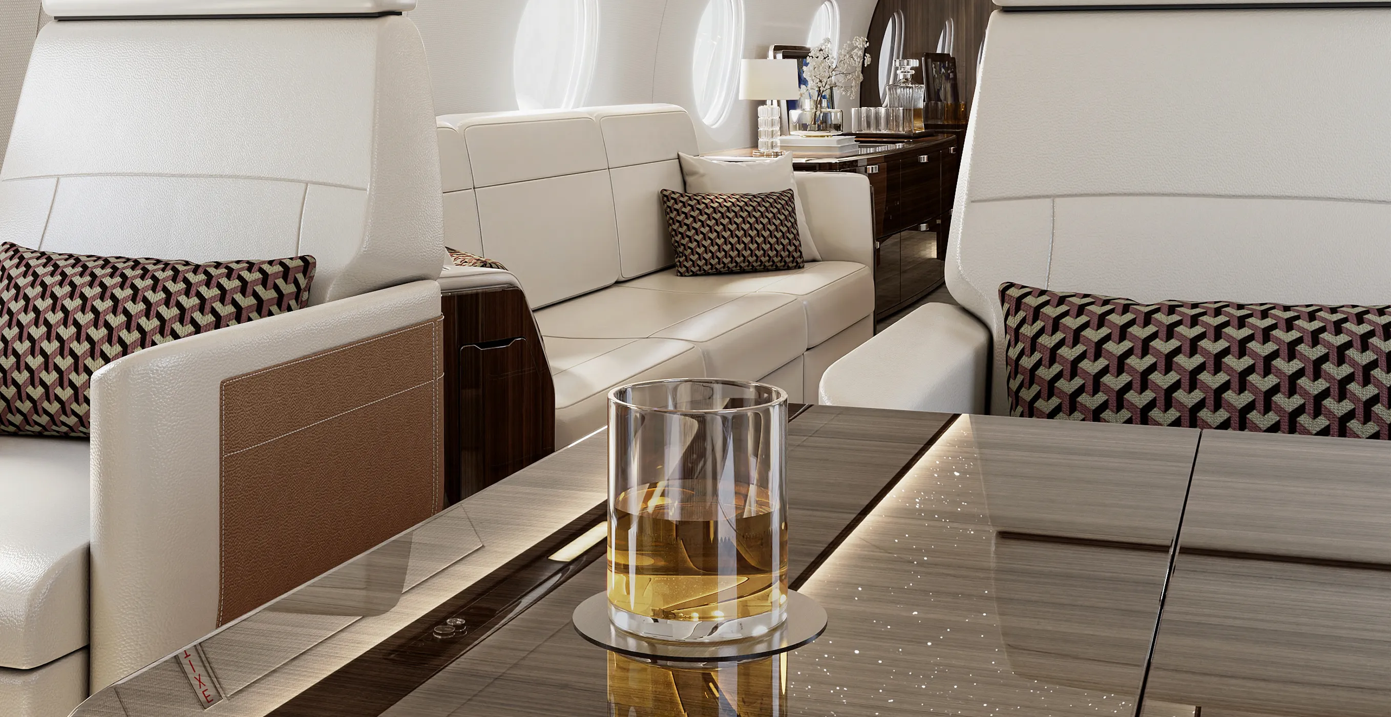 The 1,100 sqft Gulfstream G650 is an ideal model for luxury flying, with our designed interiors and custom joinery in every detail. This flying masterpiece is a private haven featuring thoughtfully selected materials, custom-made furniture, and detailed wall panels, reflecting our precise craftsmanship and sophisticated design.